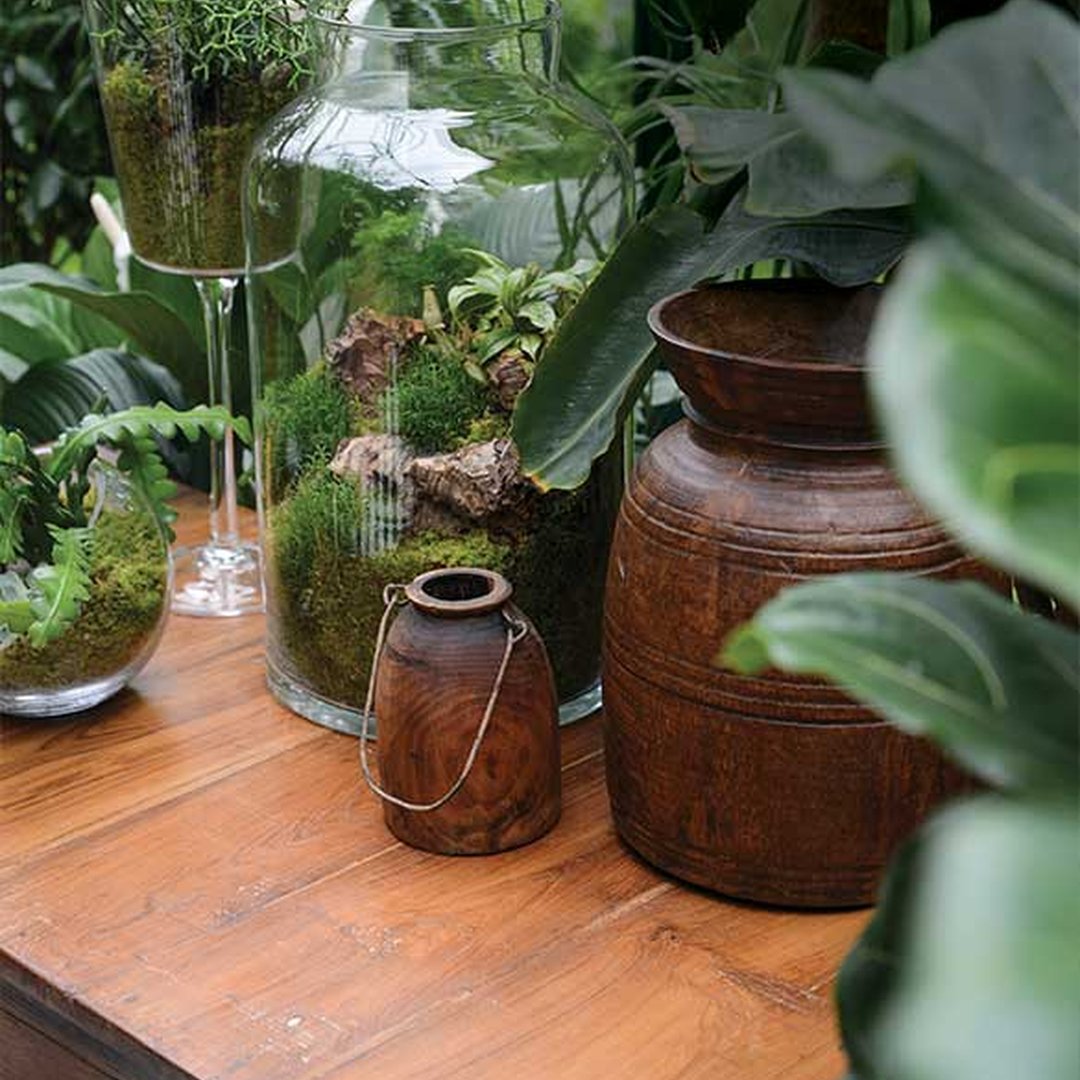 Un intérieur chaleureux dans lequel l’on se sent bien est forcément jalonné de plantes vertes. La plante est un élément incontournable pour apporter du naturel et de l’organique dans toute décoration. Elle peut être disposée de manière classique dans votre intérieur, à même le sol pour habiller le coin d’une pièce ou posée sur un meuble. Ou bien encore, d’une manière plus originale et pour apporter encore plus de style à votre intérieur, suspendue pour un air folk ou placée dans une mini-serre pour un effet jardin d’hiver. Cette dernière mise en scène est très tendance, elle permet de jouer notamment avec des cactus de tailles et de formes différentes, pour créer du volume et un effet « mini-serre tropicale ».