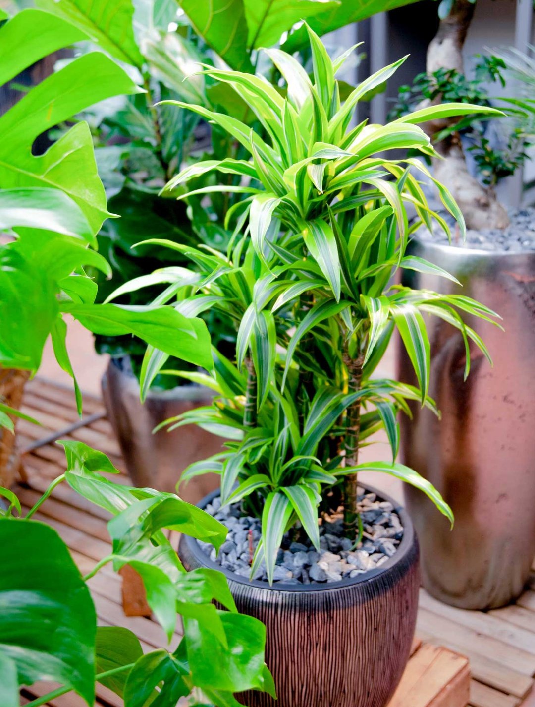 Vous obtenez des feuilles saines et brillantes en traitant légèrement les plantes à feuilles dures avec le brillant pour feuille Luwasa (les épousseter d’abord avec un chiffon humide). Les huiles comprises agissent en plus préventivement contre les parasites des feuilles. Nettoyez de temps en temps les plantes en enlevant les feuilles brunes et taillez les branches trop longues qui déforment la plan